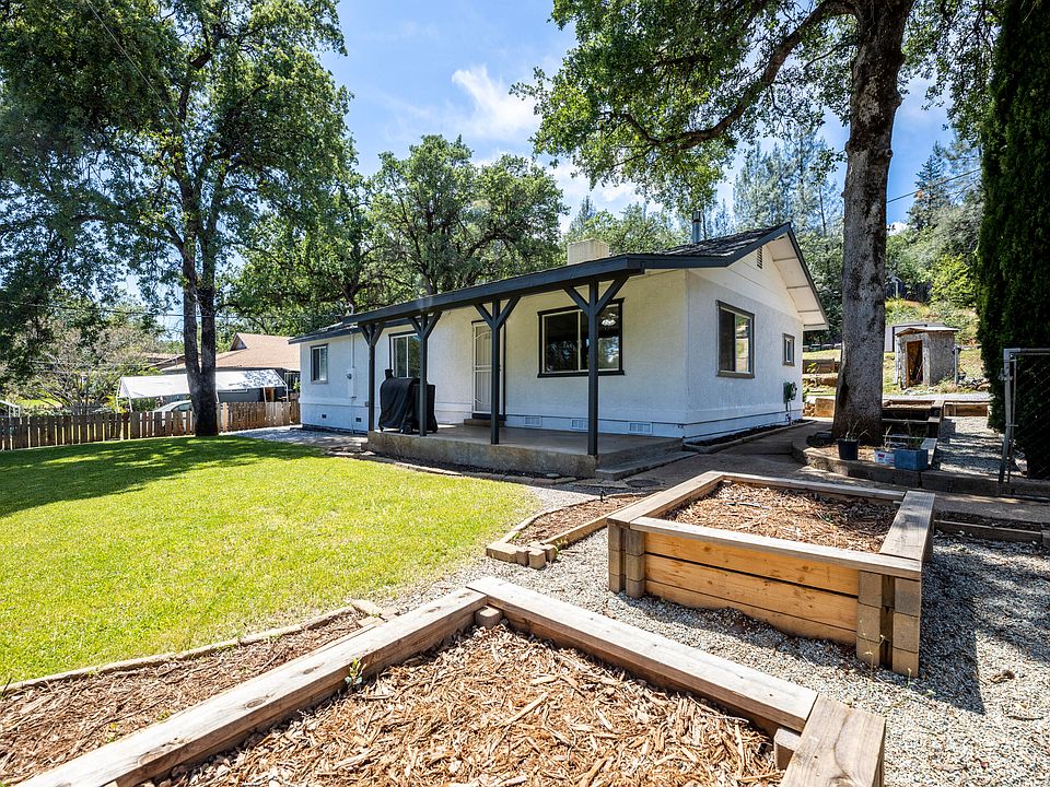 Light and Bright updated home on an oversized corner lot in Shasta Lake! 3 bedroom plus an office and 2 full baths are featured in this spacious open floor plan with refinished hardwood floors, farmhouse shelving and new 5 burner SS range. Large covered front porch, new interior and exterior paint, ceiling fans and plumbing. Beautiful raised garden beds with irrigation, and rocked walkways. Fig and Pomegranate trees, RV/ Boat Parking and large mature shade trees. Close to the park, shopping and restaurants. Must See!