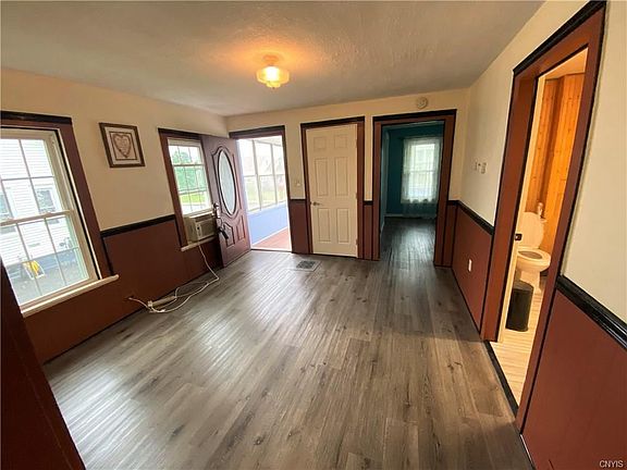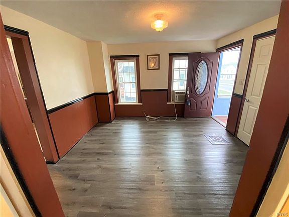 This 1,100 square foot home in the Village of Solvay features an adorable enclosed porch along the front of the home, new flooring and molding throughout the living and dining rooms, a large full bath with new tub, toilet, flooring, & lighting as well as a large space for 1st floor washer and dryer hook ups as an added convenience. The second floor features 2 bedrooms with new flooring throughout, new molding, drywall, light fixtures, and fresh paint as well as large dormer closets. New landscaping and some newer vinyl windows...All this with the desirable Solvay Electric service! Come see today!