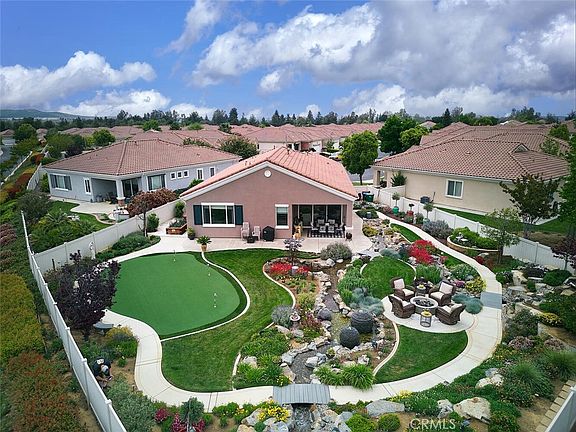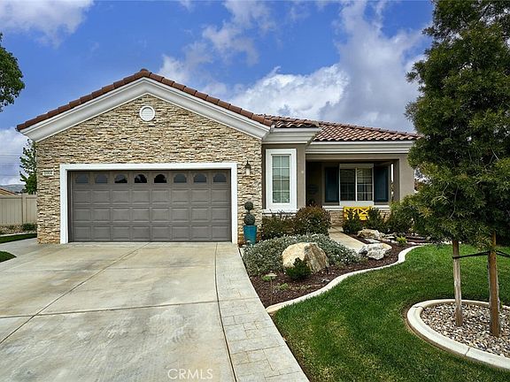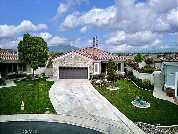 STUNNING “TRILLION” MODEL WITH APPROXIMATELY $250,000 IN INTERIOR & EXTERIOR UPGRADES! Located in Solera, a 55+ community in Beaumont. Cul de sac location with amazing views of the mountains! A copper rain tree is the focal point of the front yard. Clear streams flow through the large park-like back yard, accented by 6 beautiful water features and a putting green. Automatic yard lighting. Interior and exterior recently painted and the interior of the home is completely remodeled! Upgrades include: all cabinets in kitchen and bathrooms replaced; granite kitchen countertops; newer tile flooring in kitchen, halls, laundry room and bathrooms; kitchen backsplash; newer Bosch dishwasher with wood front panel; granite composite sink; touch kitchen faucet; newer stainless steel appliances; KitchenAid stove top; custom-designed pantry; pendant lights over kitchen countertop; upgraded carpet; metallic tile fireplace; grass-cloth wall covering on accent wall in living room; wide baseboards; upgraded fans/lighting; custom modular-type closet in guest bedroom; custom matching window covers/bedding in guest bedroom; enlarged granite/tile shower in master bathroom; master bath granite countertops; motion and touch faucets in master bathroom; newer toilets; granite countertop and newer tall cabinets in laundry room; laundry room backsplash; epoxy flooring in garage; newer hot water heater; 220 in garage; all fountains are digitally controlled by Aquascape; many drought-resistant plants in the back yard. All appliances except garage refrigerator stay with the home. Solera is a guard-gated community with a beautiful clubhouse, pool/spa, gym, indoor jogging track, billiards room and tennis courts. Solera has easy access to the 10 Freeway, close to Redlands, Palm Springs and the Morongo Casino and outlet mall.