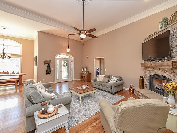This gorgeous all-brick home boasts tall ceilings and an open floor plan. Three bedrooms down. You'll find a spacious bonus room upstairs with half bath attached. Finished room off the bonus room can be used as an office. Screened in porch with large deck in the back is perfect for entertaining. Nice, private back yard that backs up to a farm. This house has a lot of extras- 3 car garage with sink, central vac, extra storage in crawlspace.