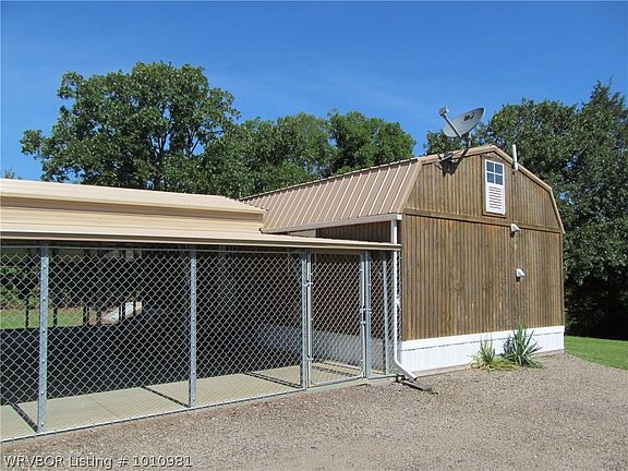Newer 1 room cabin sitting on 5 acres. Land is private and about half wooded. Nice storage buildings, new storm cellar, large covered patio. The shop is detached. New water lines, gas lines, and new septic system.