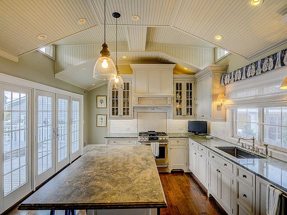 Turn the key and reboot the good life, in this fabulous oceanside custom colonial, directly across the street from the beach. An open front porch leads into a spacious living room with a gas fireplace, coffered ceilings, a cozy den, then to a screened-in rocking chair porch looking out to the ocean. Wander to a large family-style dining room that leads to a totally renovated(2013) kitchen, boasting a 36'Sub-Zero refrigerator,a center island, and another eating area. Start your party in the butler's pantry where you'll find a fully functional wet bar/wine fridge. Heading out the french doors, you can choose to relax on the trellised hot tub deck or the patio below. The 3 car garage accesses from Ocean Ave, and doubles as a big family game room. Second floor boasts 4 charming bdrms