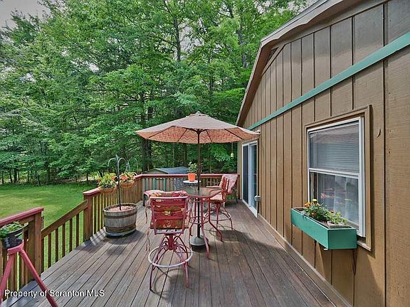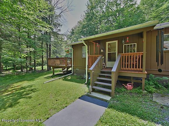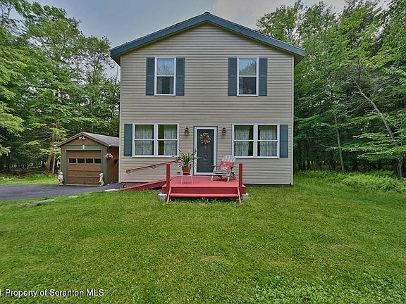 Located in an amenity filled community, this 4+ bedroom Pocono home has serene surroundings but close to rear gate for easy access. Open floor plan, modern bathrooms, paved driveway, detached garage, and new furnace. Front part of the house was added 8-10 years ago and many upgrades since.