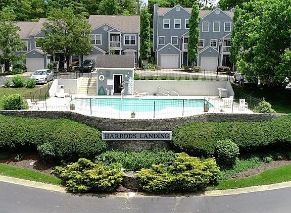 Desirable end unit in Harrods Landing offers lots of space, plenty of natural light and peaceful water view. As you enter the foyer you are greeted by beautiful hardwood floors that continue into the 1 2 bath and kitchen. Updated kitchen offers extra tall cabinets, pantry and stainless appliances including a gas stove. The two bedrooms could both be considered master bedrooms. The first master bedroom you see has beautiful hardwood floors, a private bathroom and walk-in closet along with a large covered balcony that has a view of the water. As you go up the next set of stairs you will find the laundry to your right along with additional storage space. Then you enter the second master bedroom. This bedroom has a balcony the overlooks the front of the house.