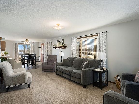 Welcome to this charming Raised Ranch home with a unique layout featuring the garage located in the basement. The main level offers 2 bedrooms, 2 bathrooms, and a convenient laundry area, creating a seamless living experience. The kitchen effortlessly flows into the dining room and living room, providing a spacious and inviting atmosphere. Recent updates include new carpet on the main level and luxurious Luxury Vinyl Plank flooring in the dining and kitchen areas, enhancing both style and comfort. Look into the basement, where you'll find an oversized 1-car garage, a third bedroom, a versatile family room (or potential fourth bedroom), and plenty of storage options for maximum flexibility and functionality. Step outside to find additional amenities, including a large 28 x 45 Machine Shed/Workshop with insulated walls, a utility shed, and a sprawling wrap-around wood deck extending from the front door to the back, perfect for entertaining or relaxing amidst the scenic surroundings. House and outbuildings are situated on three lots and the property includes three half-lots to the north for a total of .77 acres! Enjoy the convenience of walking distance to the school, with easy access to downtown and I-29, making this home an ideal blend of comfort, functionality, and serenity.