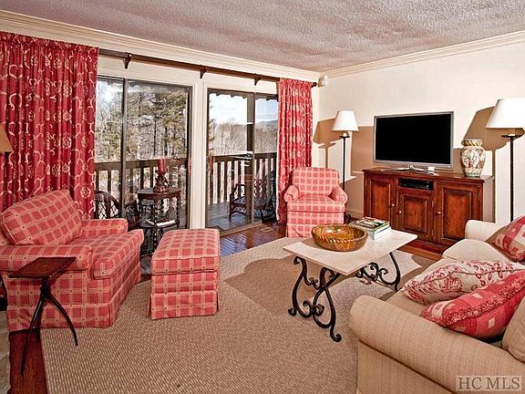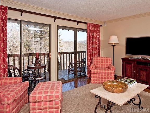 This 3 bedroom/2 bath lower level unit is in excellent condition and has been updated. It is impeccably decorated by one of Atlanta's top interior designers. Everything goes with the unit. Simply bring your toothbrush and move in. It features central heat/air and a fireplace with a gas starter for either gas logs or wood burning. The master and one guest bedroom have sliding glass doors that open to the deck and view. This association maintains walking trails, two tennis courts and a swimming pool. Highlands Mountain Club is an ADULT ONLY Community and is located on the Atlanta side of Highlands. It is only minutes from downtown Highlands with its many fine dining restaurants and shopping boutiques. There is a maintenance staff on duty and this is a well managed homeowners association.