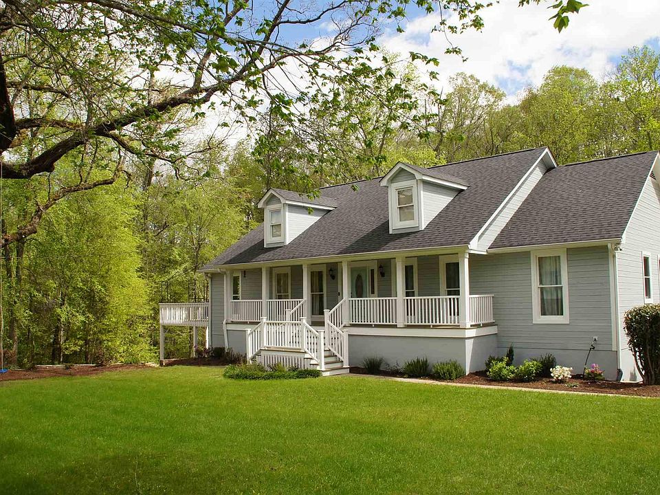 Beautiful Cape Cod nestled on almost 2 acres is a rare find in the Hope Ferry/Corley Mill area. Zoned Meadow Glen MS after 2017 rezoning. Gorgeous views of starry skies and beautiful hardwood trees. Completely private lot is sanctuary for bird and nature watching. Total renovation completed in 2015. Features custom trim, many solid wood doors for sound insulation, high end lighting, fans, and plumbing fixtures. Gourmet chef's kitchen features luxury appliances - ultra-quiet Bosch dishwasher, drawer microwave, induction range, and a dual temp convection oven. Solid white oak site finished wood floors and beautiful custom marble and tile designs throughout.