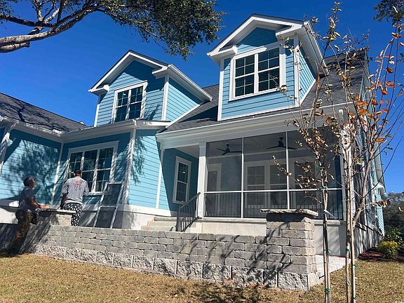 This beautiful home is located in the popular Cherry Grove Community of Charleston Landing with views of the Intercoastal Waterway. A large tree and lake views from your backyard and patio will make this the perfect place for your forever dream home. This home has 10' ceilings throughout the 1st floor. The first floor living area is 2124 heated sq ft and will consist of a split floor plan giving the owners privacy when entertaining family and friends. The spacious owner's bedroom with en suite bathroom and custom walk-in closet is located in the rear of the home with water views from each window. The second bedroom/office with a walk-in closet and attached full bathroom is located at the front left of the home. The family/great room with a fireplace is located on the back left side of the home with access to the screened porch where you can enjoy water view and beautiful sunsets. Enjoy the beautiful custom patio right off of the back screened porch. It is perfect for family gatherings and cooking out. The designated dining area has views of the lake and fountain. Large functional kitchen with 8' island and plenty of cabinets space. Just outside of the master suite is the large laundry room and drop area from the spacious 2 car garage. The second floor is 1440 heated sq ft. Bedroom #3 has a walk-in closet and en suite. Bedroom #4 a walk-in closet and shares the full bath with the Game/Bonus room. Both bedrooms #3 and #4 will have views of the water and calming fountain in the backyard. This community has a private swimming pool with lounge seating, a clubhouse facility with a partial kitchen for residents, a playground, basketball court, gazebos along the pond/lake and sidewalks and trails for walking. Just a short golf cart ride to the beach. Give us a call today to discuss!