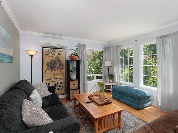 Sweetheart cottage in Hood River's favorite neighborhood. Dream location with close proximity to school, parks, medical, Commercial Districts and Gorge recreation. Lots of updates to this Mid Century charmer. Hardiplank siding, Minisplit heat / AC, vinyl windows, contemporary electrical panel and other upgrades make for comfortable, efficient living. Original Oak hardwood floors, high ceilings and crown molding maintain the charm of the era, creating elegant, comfortable spaces. The efficient kitchen is a working classic, fresh and clean with open shelving and a wall-wide, south facing window overlooking the verdant front patio. A built-in eating bar seats four! The wonderfully private living room is bathed in light from generous windows. Spacious primary bedroom feels like a luxury for the era and is nicely separated from the second, comfortable bedroom. The bathroom is delightfully large, graciously accommodating the whole house! An attached garage offers room for toys, tools or a small car and hosts the included washer and dryer. Outside, the front patio is enveloped in lush plantings, creating a peaceful entry to the home and a private place to dine outdoors or relax. The west patio area has raised planting beds and a pea gravel patio offering additional outdoor living. A large parking pad could host your van, RV or boat. So much fun in such a terrific location and, thanks to C1 zoning, you can share it with others as a Short Term Rental! Enjoy it exclusively or monetize it as a second home... the choice is yours.