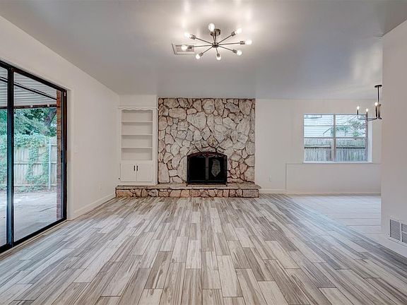 This updated 3-bed, 2-bath home features an oversized backyard on a cul de sac lot. Inside, find a bright living area with modern finishes and ceramic wood tile flooring. The kitchen boasts ample storage, updated stainless steel appliances, quartz counters, and a beautiful soft blue backsplash. The bedrooms offer ample space and storage. Bathrooms feature beautifully updated tile, quartz counters and contemporary fixtures.