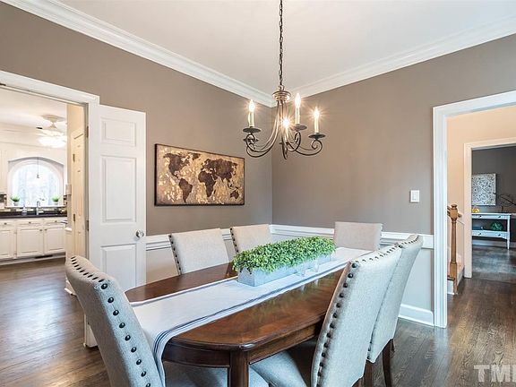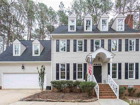 Updated traditional charmer in popular N Raleigh community. Spacious family room w/masonry wood burning fireplace. Updated kitchen w/granite countertops & SS appliances. 1st floor has gorgeous hardwoods & 2nd/3rd floor has new carpet. Large master suite w/ 2 WICs, whirlpool tub, sep tile shower + granite top dual vanities. 2 other large bedrooms. 4th bedroom/bonus room. Finished 3rd floor w/bonus. New HVAC '17. New roof '14. Oversized deck overlooks landscaped, fenced backyard. Pool & tennis community.