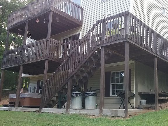 Spacious one owner home on over 5 acres of wooded land. Invisible fence for your furry friends around backyard. Large kitchen with plenty of cabinet space, new large refrigerator and new vinyl plank flooring. Sliding doors off dining room leads to large deck that wraps around the house. Additional deck above accessible from master bedroom for plenty of evening star gazing. Lower level features a finished family room, additional room can be used as workshop/office with plenty of storage space. French doors lead out to the hot tub. New roof and new water pressure tank. All this, yet only mins to Lynchburg and all it has to offer. Call now for a viewing!