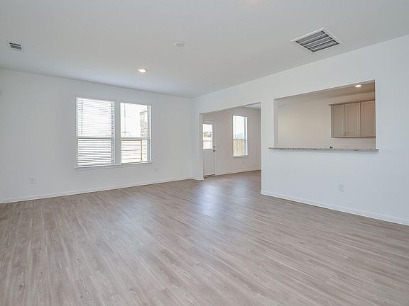 Modern grey cabinetsUpgraded vinyl flooringDining areaGranite countertopsLarge primary bedroomContemporary oversized great roomSpacious kitchen
