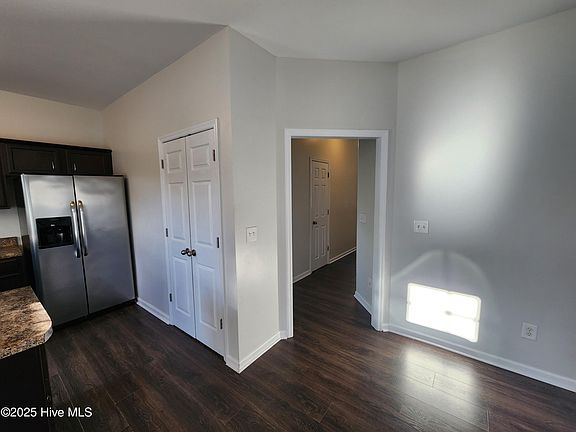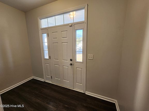 Walk into the foyer with laminate flooring that continues down the hallway. In the hallway is a half bath and the laundry room. The hall leads to the kitchen with a pantry, and is open to the living room with a gas log fireplace. In the foyer the stairs lead up to the bedrooms and full baths. The master bedroom has a trey ceiling, two walk-in closets, and an en-suite full bath with his and hers sinks, walk-in shower, and garden tub. The two other bedrooms share a hallway full bath. The sliding glass door in the living room leads out into the screened in patio. Outside the patio is a concrete pathway leading to the fore pit with round concrete seating pad. Next to the screened patio is a raised garden bed. The backyard is surrounded by 6' wood fencing.
