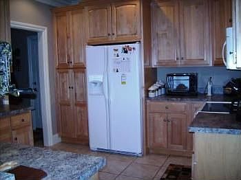 This is a gorgeous 5 bedroom/3 bath home. The front entrance opens to a very attractive 2-story foyer with hardwood stairs to the upper level. All upper level bedrooms are large with walk-in closets, and the huge main-level master suite has 2 walk-in closets and large master bath with Jacuzzi tub, separate shower, and his & hers vanities and sinks. A 2nd main level bedroom is currently being used as a den. The laundry room is also conveniently located on the main level. The living room has a vaulted ceiling and very nice gas fireplace. The super sharp kitchen has ceramic tile flooring, lots of beautiful cabinet and counter space, a breakfast bar, and breakfast area. The upper level hallway opens to the foyer and living room below. The 5th bedroom has its own sink for added convenience, and would make an excellent nursery. There are custom window treatments, custom cabinets, and crown molding throughout the home, and a built-in sound system. Two 40 gallon water heaters help el