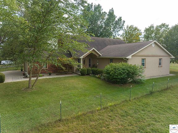 This exquisite stucco and brick home, nestled on a 3-acre lot just outside the city limits, offers a serene escape from the hustle and bustle of urban life. With 5 bedrooms, 3.5 baths, and an array of impressive features, this property provides the perfect blend of luxury and tranquility. The main level boasts three spacious bedrooms and 2.5 baths, providing ample accommodation for family and guests. The master bedroom is a true oasis with its own bath, complete with three closets for your convenience. Two separate family rooms ensure plenty of space for relaxation and entertainment. One of them features a cozy wood-burning fireplace, perfect for chilly evenings. Custom trim work throughout the home adds character and charm. The well-kept kitchen is a chef's delight, featuring granite countertops, a dishwasher, a natural gas range, and an electric single wall oven. The unfinished basement, located under the main wing, offers a large open area with extra room for storage or potential expansion. A massive 40x50 detached shop with a 14' tall door provides ample space for a workshop, storage, or even running a small business. The shop is equipped with a full-sized paint booth, a small office, a full bath, and an additional room. Enjoy the convenience of well water, city water, city sewer, and city gas. Outdoor living is a pleasure with a large open concrete patio, a concrete sidewalk surrounding the house perimeter, and a spacious concrete driveway with extra parking spots. Approximately 1.5 acres of the land are fully fenced in. The property features a delightful mix of tree cover, including maple and oak trees, along with various plants and shrubs. Additionally, there's a 30x40 fenced-in garden that has been lovingly tended for over 20 years. This exceptional home offers the best of both worlds, combining the tranquility of rural living with modern conveniences and ample space for all your needs. Don't miss this opportunity to make this picturesque property your own.