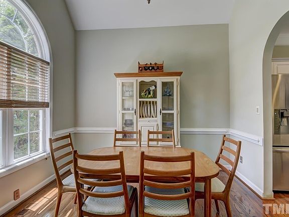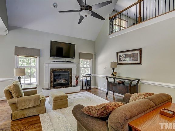 Fantastic transitional home on nearly 2 private acres in convenient Raleigh location. Refinished hardwoods throughout 1st flr. 2 story family rm features new gas log fp. Formal dining w/ vaulted ceiling. Kitchen includes s/s appliances & tile backsplash. Sunny breakfast area w/ bay window. 1st floor master suite offers trey ceiling, dual vanities, garden tub w/ separate tile shower & WIC. Spacious bonus rm w/ closet. Loft area. Huge 3 tiered deck. Massive, fenced backyard w/ wooded views! New HVAC 10/13.