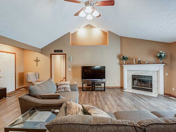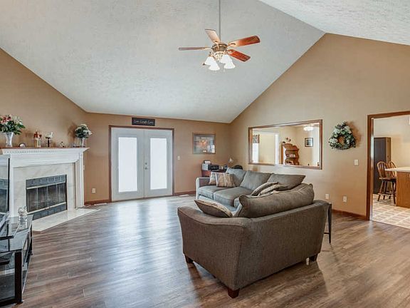 Welcome to this well maintained, all brick, large single level home located in Haubstadt. Upon entering you will find a spacious living room that boast beautiful luxury vinyl tile flooring, vaulted ceilings, built-in corner gas fireplace with marble like surround and white casing and a ceiling fan. The kitchen features a breakfast bar, stainless steel appliance, recessed lighting and an eat-in dining area. Just off the dining room is an extra room that could be used for an office or play room. The master suite has vaulted ceilings, a huge walk-in closet and a master bathroom with tub and shower combo. There are two more bedrooms and full bathroom. Step out back to enjoy the large open patio and private back-yard that backs up to a cornfield.