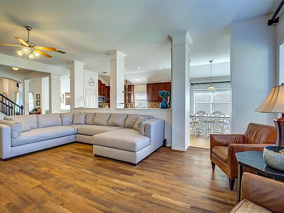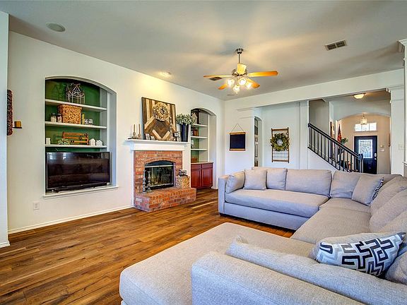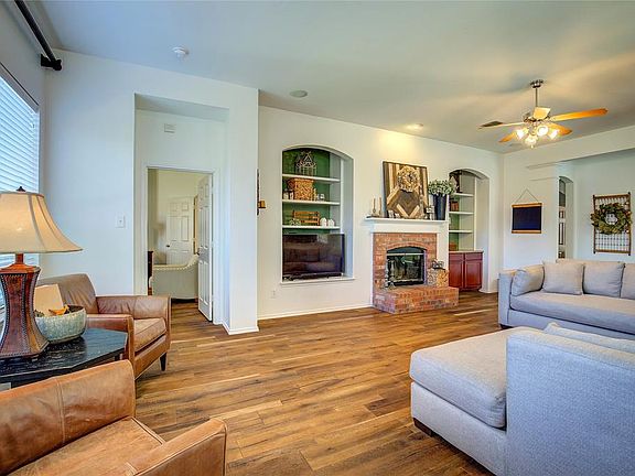Lovely home with four bedrooms plus an office in Travis Ranch. The spacious living area has a wood burning fireplace and opens to the island kitchen with breakfast bar, granite counters, and stainless appliances. Formal dining room along with a breakfast area. Master suite featuring a master bath with dual vanity, garden tub, and a separate shower. The second floor has a large living area or game room along with a half bath. Great backyard with a covered patio and wood privacy fence.