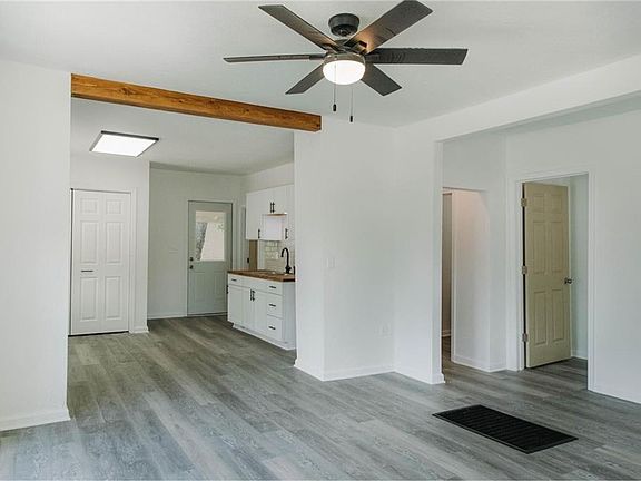 This Newly remodeled cozy 2 bedroom, 1 bath home on a corner lot with a large front porch, including all new plumbing, HVAC, Drywall, and back porch. Owner is installing new gutters.