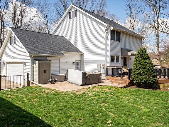Custom built home on a dead-end street = great privacy +convenience of a neighborhood close to the interstate and schools on the North side. 2400+ sq. ft. (main+upper level) with an add'l 1322 sq. ft. in a mostly finished basement. 6 panel hardwood doors throughout; drive is heated so no shoveling snow. **List of updates is impressive...here are just a few: Roof; new paint and carpet (entire upstairs); Weather-tech deck with lights, fence, poured stamped patio with hot tub; detached 20' x 32' garage with 12' door - insulated and 200 Amp electric, water and cable....perfect get-a-way; Master bedroom and bath.** Call today to see this Home and make it yours!!!