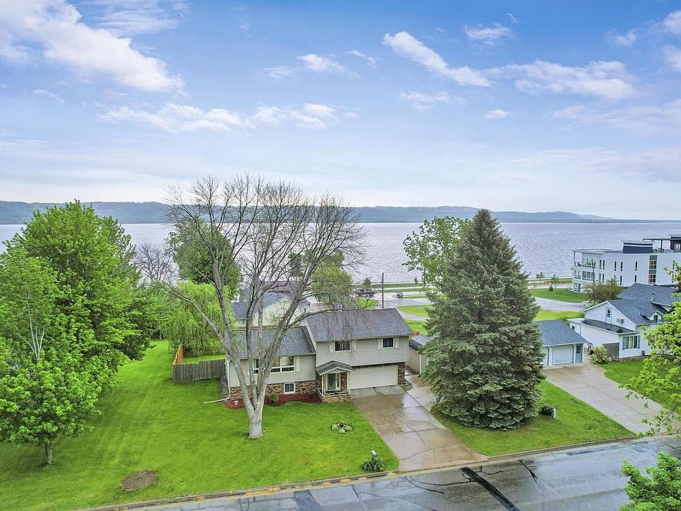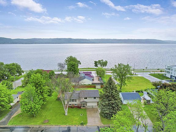 Lake amenities without the lakefront price! Minutes to the walking and bike trail, beach, park, restaurants, marina and more. Start enjoying lake life in this move-in ready, well-maintained three-bedroom, two-bathroom home that overlooks Lake Pepin and the Mississippi River. This home showcases stunning water views, which can be appreciated from inside and outside allowing you to watch the sunrise, sail boats, river boats, eagles and more. With a spacious three-level split floor plan, this home can serve as a single-family residence or a vacation rental. There's potential to create a fourth bedroom on the lower level or use the space as an entertainment area for your guests. Additional features include an oversized deck, fenced in yard, covered front entry, two-car garage, extra concrete parking for your boat, and a storage shed. Don't miss out, close proximity to water activities, providing the perfect setting to relax in any season in this location!