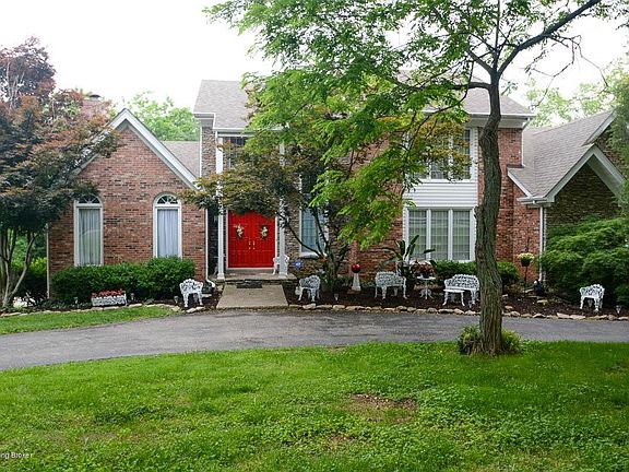 Gorgeous gated, fenced estate home nestled on 1.38 acres 1 mile from coveted North Oldham school campus. Entry hall with hardwood floors. Formal living room features vaulted ceiling, hardwood flooring, marble fireplace and opens to the beautiful vaulted dining room with hardwood floors. The kitchen features a beautiful stone fireplace large enough for Jeffersonian cooking , ceiling fan and island with granite and walks out onto a new deck overlooking the beautifully naturally wooded/landscaped yard. Large Library/office with book shelving and cabinets is located off the hall. Spacious first floor master bedroom features a large in-suite bathroom, large walk-in closet, dual sinks, huge Jacuzzi tub, shower, vaulted ceiling with ceiling fan and walks out onto the large adjoining deck. The loft area overlooks the living and dining rooms and has new carpet and lighting. Low E Triple-pane windows and doors installed on majority of house. New furnace and A/C. Two bedrooms on the second floor have a Jack & Jill bath with separate vanity areas. Laundry chute is located through all floors. The walk-out lower level features a wet bar, woodburning fireplace, new plank flooring and new ceiling fan. Lower level also features a library (or bedroom) and an additional bedroom and full bath. The very large laundry room is equipped with a deep sink. Deep 2 car attached garage plus a deep 3 1/2 car garage with a half bathroom, carpeted office/studio area, natural gas heat and a large storage area. The large upstairs of the garage, as originally intended, could easily be made into an apartment or separate living quarters for guest or teenagers.