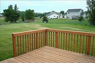 Welcome to this wonderfully updated ranch on a nearly 1/2 acre lot in a quiet Grimes cul-de-sac. Nice curb appeal with stone accents and lush landscaping. Welcoming entryway features beautiful maple hardwood floors that flow throughout much of the main level. The living area has a vaulted ceiling and a gas fireplace. Nice dining area features sliders to the back deck. The large kitchen features abundant cabinetry, a breakfast bar, granite countertops and stainless steel appliances. The master suite features a tray ceiling, a walk-in closet and an en-suite bathroom with a newly updated, fully tiled shower with a glass door. The main level features two additional bedrooms, another full bathroom and laundry. The lower level is finished with a large family room and a fourth bedroom with en-suite bathroom. Out back is a nice sized deck that overlooks the fully fenced backyard. Detached storage shed is a one car garage! Security system. Call the property owner for a showing today!