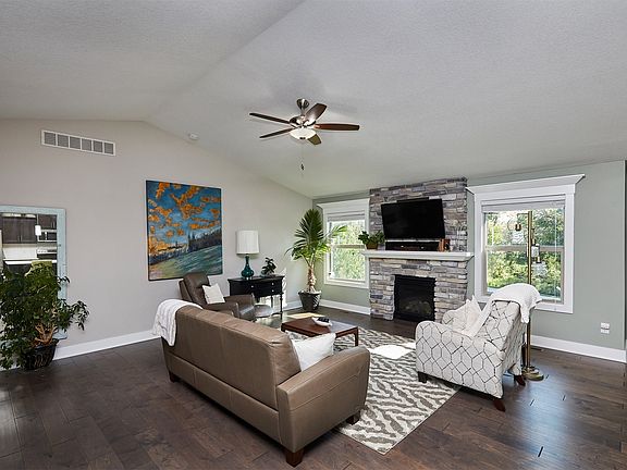 Welcome to Autumn Park! If private & quiet are what you are looking for, you have found it! This 5 bedroom walk out ranch backs to big beautiful trees & bike path. Enjoy morning coffee or dinners on your covered 12x12 deck. Large family room w/ stone fireplace. Open floor plan to kitchen. Quartz counters, All SS appliances with new dishwasher, walk in pantry, drop zone off gar. Primary has tray ceiling, double vanities, tile shower & glass doors. Separate laundry room, off bedrooms. Walkout finished basement w/ wet bar, huge family room, fireplace, 2 bedrooms and walkouts out to patio area. Great location - close to many amentities. This home has been meticulously maintained schedule a private tour to see the updates for yourself.