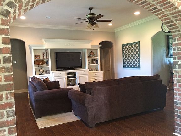 2 year old French country 4BR/2.5BA in upscale Victorian Heights subdivision in Moss Bluff, including 1894 sqft living 2770 sqft under roof. 4th bedroom has wood flooring and can be used as office or bedroom. Kitchen features antiqued custom cabinets with island and double woodmark granite, along with granite composite sink, stainless appliances, and walk in pantry. A brick archway separates the kitchen and living room. 9 and 10ft ceilings with double stacked crown moulding, along with a beautiful 14ft barrel ceiling foyer. Master bath includes tiled rainfall shower with separate soaking tub and walk-in closet. Large back porch with stained deck. House is wired for built in surround sound. This house is not in a flood zone and is located on a large cul-de-sac lot in a family friendly neighborhood with no thru traffic. Call to set up a viewing 337-274-5396 or 337-513-2123. Please no realtors.