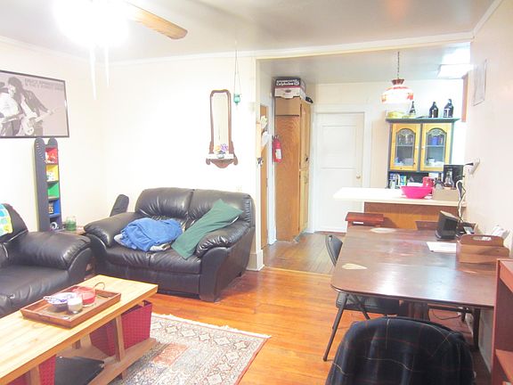 Our Website is schneiderfamilyrentals.com This house was built in the early 1890s and is divided into 2 apartments, and this one is the entire 2nd floor, and is available for August. It is conveniently located walking distance to downtown Lawrence. Except for the bathroom all the floors are the original wood. The living room is large and has a ceiling fan, and window a/c. The corridor style kitchen has light oak cabinets, a built in breakfast bar, stove, refrigerator, and a dishwasher. The bathroom is at the end of the kitchen and has an antique claw foot tub rigged with a shower, and a washer dryer stack unit. The smaller of the two bedrooms is off the kitchen, it has a ceiling fan, a window air conditioner, and a walk in closet. The larger of the two bedrooms is off the living room it has a ceiling fan, a window air conditioner, and a corner style closet. We accept cats that are neutered/spayed and small dogs with a pet deposit and pet rent. References and security deposits are required. This house has been locally owned and managed by the Schneider Family, for more than 25 years, please call us and we will set up a showing. Our Website is schneiderfamilyrentals.com To see a virtual tour of the apartment, copy & paste the links below. The tour is split into 3 parts. Owner bills tenant for gas and water. tenant sets up electric with Westar. Utility deposit $100