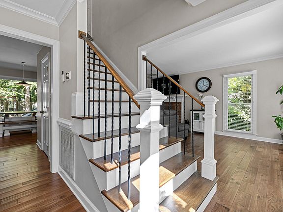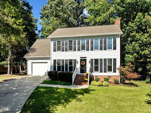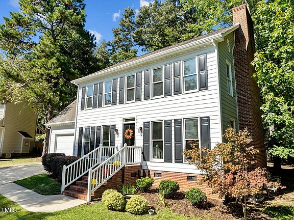 Welcome to this lovely home located on a prime cul de sac in one of Apex's most sought after neighborhoods! The light-filled, eat-in kitchen features granite countertops, white cabinets, stainless appliances, and a sunny breakfast nook overlooking the large private, fenced backyard. The family room provides a sun-lit space with fireplace and French doors opening to the back deck, making it perfect for entertaining or just relaxing! The fire pit will provide plenty of warmth this winter! A separate dining room features elegant crown and chair rail molding. Beautiful wood floors flow throughout the first floor. The primary bedroom with walk-in closet and two additional bedrooms are situated on the second floor. The upstairs loft provides a cozy, open bonus space to unwind, work, exercise or play. Walk to community pool, tennis courts, greenway trail, playground and public library. Just 2 miles from downtown Apex.
