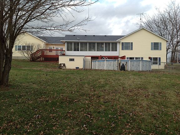 Beautiful country home located on an acre and a half lot with an adjoining acre and a half lot for a total of 3 acres. The house is a ground level with a walkout basement and the lot has numerous fruit trees, a swimming pool and a good place for a garden or a horse. The house and property would be perfect for a two family dwelling or for foster care. The ground floor has three bedrooms, two full baths, living room, dinning room, kitchen, large office, large sunroom and four car garage. The downstairs has three bedrooms, a full bath, a gigantic family room, storm shelter and pantry. You walk out to a pool with a deck. New laminate flooring has just been installed. All rooms upstairs have ceiling fans with lights. The home is located 2 miles from Frankfort on 127. Close to schools, churches and 2 city parks. Now is the time to upgrade you home while financing is low and yes we will take your home or farm in on trade in.