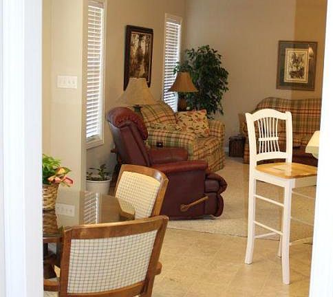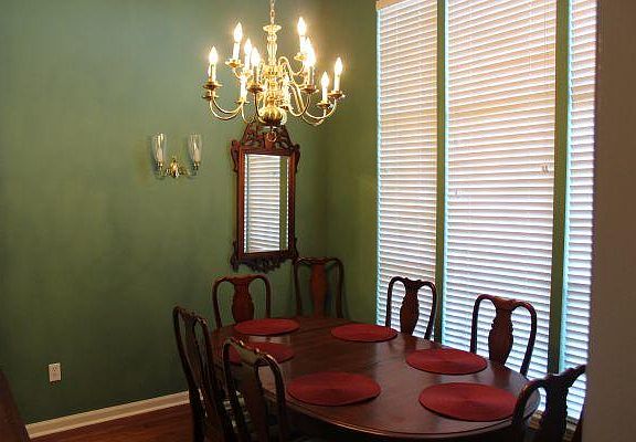 4 bedrooms, 2 baths, formal living room, open den, kitchen and breakfast room, dining room with raised ceiling, hardwood floors in foyer and dining room, nice size pantry, 2 linen closets in hallway. Master bath has separate shower & tub. Master bedroom has huge walk-in closet. Carpet in bedrooms. Laundry area off kitchen. Appliances: refrigerator, stove, dishwasher. Covered patio.