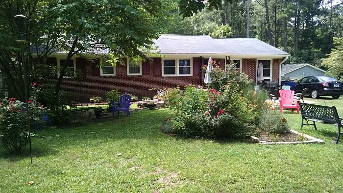 Lovely brick ranch in west Raleigh neighborhood just around the corner from the iconic Pam's Farmhouse restaurant. Has hardwoods throughout. Ceramic baths and black porcelain floor in kitchen. Breakfast nook also with hardwoods. Huge heated/cooled sun room with ceramic tile floor. Has large living room that connects with dining room. Vinyl replacement windows. New exterior paint and some new interior paint. Has17" high toilets in both baths. New central A/C 2015. Gas heat/water heater. Electric stove.12X24 Shelter; storage building 12X12; storage building 12X8. Beautiful front yard with various plants and trees and stone fire pit. Quiet neighborhood within walking distance to Powell Drive Park. Also, walking distance to the neighborhood lake. Close to Cary, downtown Raleigh, NCSU, I 440, I 40 and Rex Hospital. Seller will allow $1000 for replacing counter tops in kitchen. 11/23/15