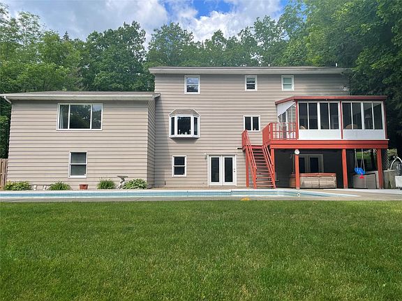Fabulous Colonial on 1.25 acres, 4 Bedrooms, 2.5 baths. Completely updated home throughout. Inground pool and hot tub, walk out basement with tons of space for entertaining. Space for home gym, office, possibilities galore. 1st floor family room with beautiful gas fireplace with built in shelving, Large den with wood fireplace, dining area and 3 season sunroom. Beautiful park like lot partially wooded with views.