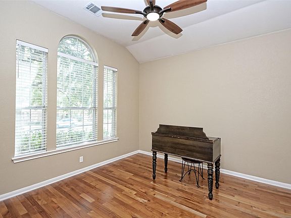 This spacious single-story home offers 5 bedrooms, 3 full bathrooms, and generous living areas designed for comfort and entertaining. Beautiful hardwood floors flow through the living, formal dining, office, foyer, and hall, while 18" tile enhances the kitchen and breakfast area. The kitchen features built-in appliances, a large pantry, and opens seamlessly to the family room filled with natural light and a character-rich corner fireplace. The front bedroom includes its own full bath ensuite, creating an ideal in-law or guest suite. The primary suite is oversized, providing plenty of room to relax. Enjoy the outdoors on the covered back patio shaded by mature trees, or take advantage of the long, inviting driveway with ample guest parking. The garage includes built-ins, and there’s even more storage with closets, a pantry, and an outdoor storage building. The neighborhood adds to the appeal with nearby parks and walking trails, easy access to downtown Pflugerville and Stone Hill, and close proximity to schools including IDEA. Set on a wide lot in a quiet, friendly community, this home combines warmth, function, and location.