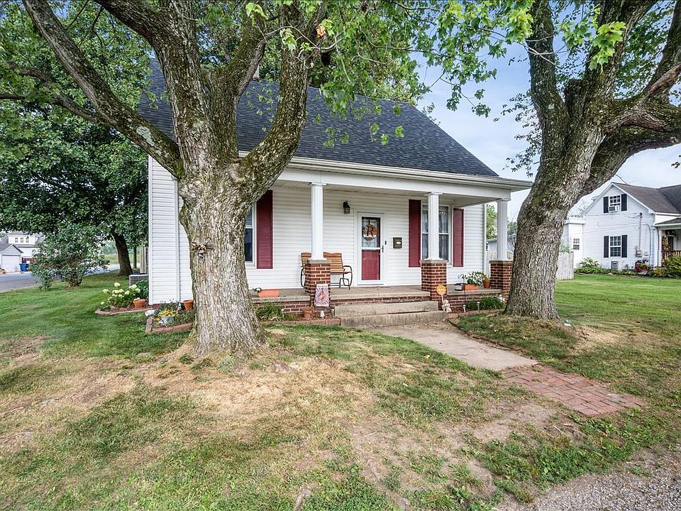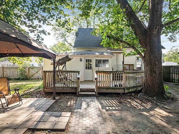 Updated 1.5 Story with 2.5 car garage on large double lot, located half a block from Boonville's City Lake! This home has 2283sqft with 3 bedrooms, eat-in kitchen, living room, laundry room, and bonus room that could be used as 4th bedroom. Main floor has 2 spacious bedrooms, living room, laundry room, full bath, and eat-in kitchen with dining area, backsplash, and stainless steel appliances are all included. The laundry room/mud room is just off the kitchen on main floor and has access to back yard. Upstairs has a bedroom with built-in bunk beds and walk-in closets. The other room could be used as a bonus room or bedroom and walk-in closets offer plenty of storage. Additional features include: newer replacement windows, newer appliances, and crown molding. There's a covered front porch, deck on the back, wood privacy fenced yard, mature trees on spacious level lot, and 2.5 car garage... this home has it all !