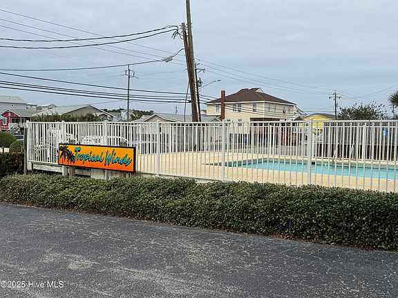 Top floor unit with great ocean views located in the Tropical Winds building on the second row from the ocean. Close proximity to beach access, restaurants, and 10 blocks from the Carolina Beach Boardwalk. The Tropical Winds community has a pool on site. This condo can be decorated to your taste because it needs some TLC. The condo has 2 full baths, one bedroom, and bunk beds in the hallway; with a sleeper couch or Murphy bed, it could sleep 6. Also includes a 5.5' x 8.5' ground level storage closet. This property is subject to a commissioner sale with a 10-day upset bid period. Upset bids must be a minimum of 5 percent over the previous contract price. See N.C. General Statute Ch. 46A