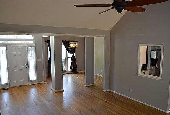 Single story home conveniently located in South Raleigh. Home sits on a .93 acre lot with a fenced in backyard oasis. 14' cathedral ceilings in the living, kitchen and master. Hardwoods flow through the main living areas and the master. Spacious kitchen boasts stainless steel appliances. The master suite features a recently updated tiled shower, dual vanity, walk in closet and a large window overlooking the flat back yard. Two car garage and large detached shed for storage. in the process of installing a new roof