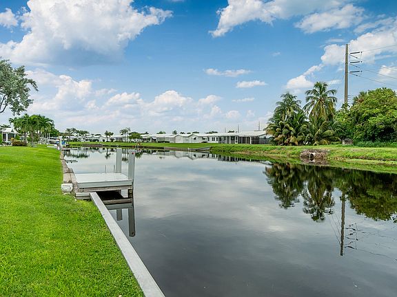 Welcome Home to Palm Beach Leisureville on the water! This Extended Challenger with very spacious living areas is the perfect place to call home, whether it is your full time residence or seasonal escape from the cold northern winters. Canal water views from both bedroom windows and the rear family room and open kitchen areas, where you will be spending most of your time when in relax mode or entertaining family and friends. Privacy view - no neighbors across the canal! Leisureville is a 55+ community with 3 Pools and Clubhouses with many Clubs and Activities for you to choose from along with free golf on Par 3 18 hole golf course. Feel the sense of community as neighbors work together to keep the monthly HOA fee low for all of the homeowners. Pet friendly community. Paid Rec. Lease. Please view the walkthrough video available in the MLS Listing under the photos tab. Canal water frontage measures 55 ft at the seawall.
