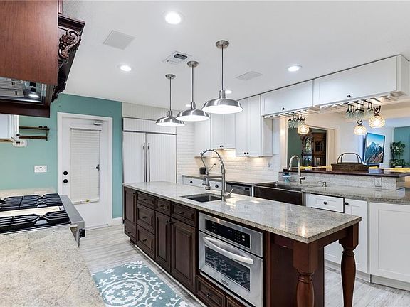 Welcome home to one of the largest homes in the beautiful Palm Beach Leisureville! This extended challenger boasts integrity, with custom features throughout. Gourmet kitchen, waterproof vinyl wood flooring with a lifetime warranty, tasteful trim work and so much more! Pulling into this oversized two car wide driveway, you'll be greeted with a beautiful well-maintained yard with seasonal plants and flowers. Through the entryway your formal dining room is located to the right to host all your family dinners with plenty of space. The spacious gourmet kitchen is in the center of the home that is just breathtaking. Consisting of a six burner GAS Viking stove with a griddle and two ovens. This kitchen also has two wall ovens, an oversized Sub-Zero refrigerator, with white paneling
