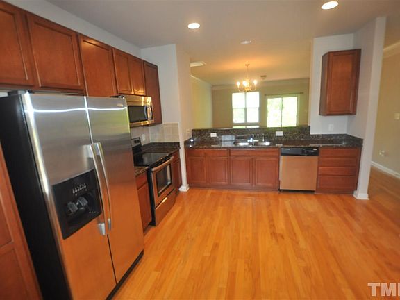 Great townhome in West Cary, 4 bedrooms and 3.5 baths w/2 car garages, 14x14deck, HARDWOOD FLOOR IN THE WHOLE HOUSE., Eat-in Kitchen w/Granite countertops,SS appliance. End unit, beautiful wooded backyard. Swimming pool in community, Walking distance to nearby Cary Park shopping center. Dog under 30 pound is allowed.