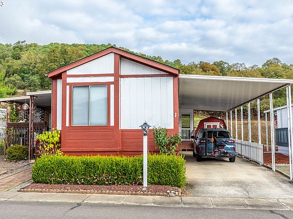 Comfortable 2BED/2BATH home in Roseburg's 55+ Rose Terrace community! Close proximity to shopping, medical services, employment, schools, and amenities of the Umpqua Valley. Home is well cared for and ready for new homeowners! Spacious 12X42 attached carport + two sheds provide shelter from the elements for your vehicles and tools. Ample room for gardening and the 12X24 covered deck with screened area provides space for entertaining guests year around. All appliances included! Home features many accessible features including walk-in bathtub, grab bars, and wheelchair ramp to covered deck. Space rent is $695/mo and includes water/sewer/garbage. Call today for your private tour!