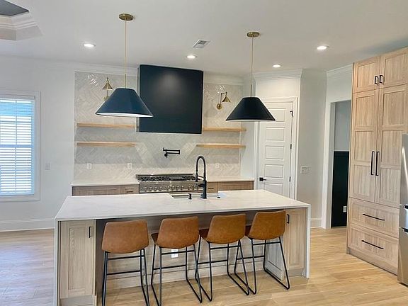 - Features: Breakfast Bar, Breakfast Area, Kitchen Exhaust Fan, Kitchen Island, Pantry, Stainless Steel Appliances, Solid Surface Counters