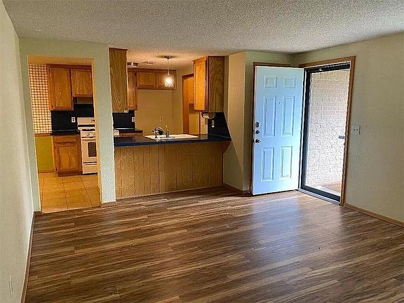 2 Bedrooms, 2 full Bathrooms, roommate plan, with in ground storm shelter, new roof, and outdoor storage building. Wood fence, single car garage, double driveway, central heat and A/C, with tile and wood style vinyl planks flooring throughout.