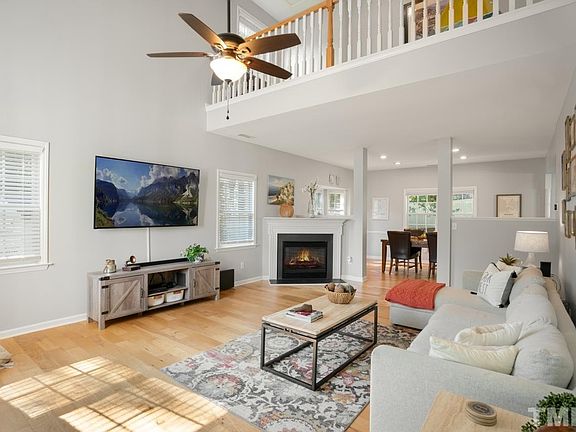 Gorgeously updated, cul-de-sac home in the Heart of Apex! Great open floor plan with soaring cathedral ceiling in the living room allows tons of natural light. Spacious dining room with eat-in kitchen and picturesque bay window seat over looking the back yard. 3 Bds and 2 Full Ba upstairs, with great loft area for kids or home office. Completely updated bathrooms and kitchen. Back yard is fully fenced in with a huge 2 tier deck, perfect for entertaining letting the kids and pets run free. Come see it!