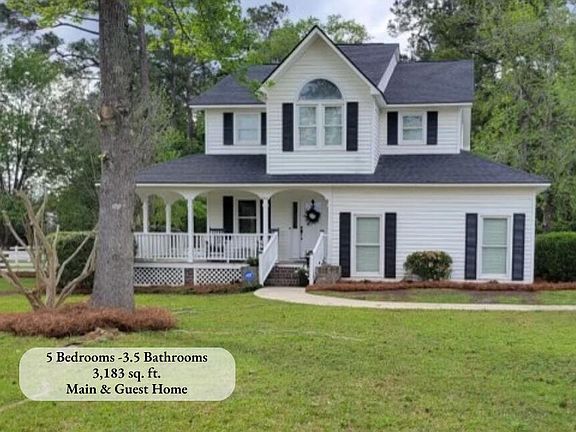 3,183 Sq Ft. corner lot home, just minutes from Historic Summerville and a short golf cart ride away to Pine Forest Country Club. This homesite spans nearly 1/2 acre, boasts both stunning curb appeal and a large, welcoming porch. Originally a model home, it includes a 925 sq. ft guest house that's been completely upgraded. The main house comprises of 4 bedrooms, 2 1/2 baths, a formal dining room, and a family room with a cozy fireplace. There's also a spacious downstairs bedroom that could be converted to a main floor master. The master suite upstairs features a large bathroom with dual vanities/closets and another cozy fireplace for added charm. There are 2 additional amply sized bedrooms. Out the back showcases a 230' screened porch and deck, all with large yard with plenty of roomto install a fenced dog run/play area. All new warranted appliances in main house & guest house. Don't hesitate to schedule an appointment to view this exceptional home. It's a property that you'll be proud to call home!