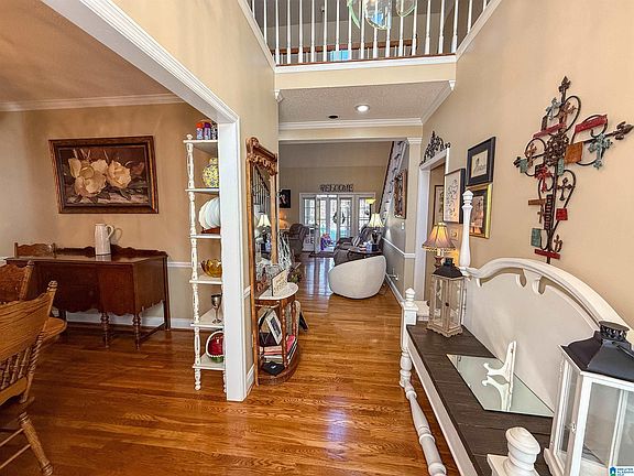 Stunning home located in the heart of Golden Springs, featuring a spacious living room adorned with skylights that flood the space with natural light. The walls and kitchen cabinets have been newly painted, complemented by elegant stone countertops. Throughout the home, you'll find hardwood and tile flooring, with cozy carpet in the master and upstairs bedrooms. The main level boasts a sunroom that opens to the pool area, along with two bedrooms and a full bath. The master suite includes a walk-in closet, a jetted tub, a tiled walk-in shower, and separate vanities. Upstairs, there are two generously sized bedrooms, one equipped with a full bath. Set on a .34-acre lot, this property features a new 12x20 storage building, a privacy-fenced backyard, and a beautiful inground saltwater pool. Perfect for summer gatherings, it includes a spacious area with an inground gas grill by the poolside, as well as an 11x16 pavilion with electrical hookups and a ceiling fan.