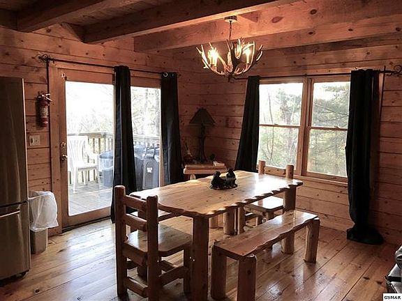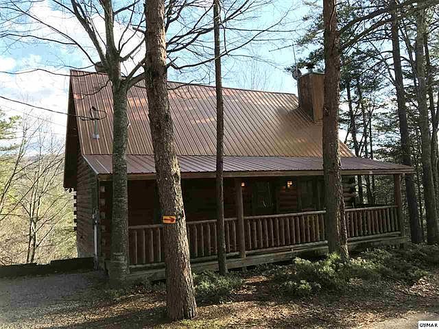 Beautiful 2BR/2BA Real Log Cabin. Perfect location to live or use as rental investment! Main Level features an Open Floor Plan with Dining area, Kitchen with new stainless appliances, Large Living Room with Stone Wood-burning Fireplace. T&G Ceilings with Exposed log beams, MasterBR & 1BA on Main Level with Laundry Room Closet. 2nd BR & BA Upstairs with jetted tub. Game Room and Futon upstairs in Loft. New CopperMetal Roof and New Water Filtration System. Spend time on the Back Deck enjoying the Stunning Mountain Views and a Hot Tub! Plenty of Privacy provided by Mature Shade Trees!! Level 3 Car Parking! Excellent Investment opportunity.